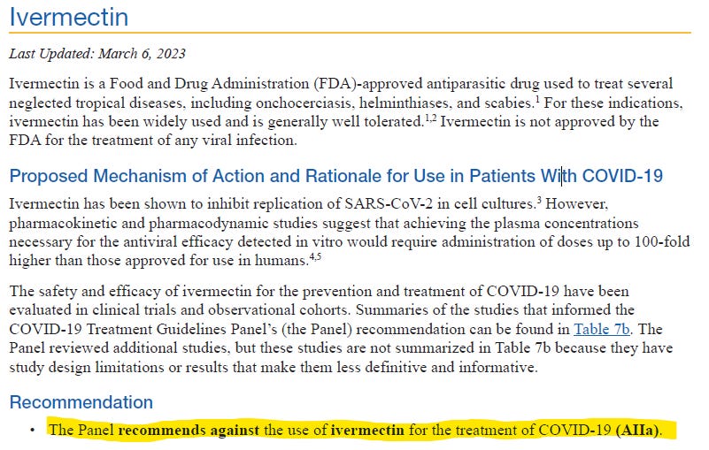 Formal recommendations from the NIH on Ivermectin use with COVID-19